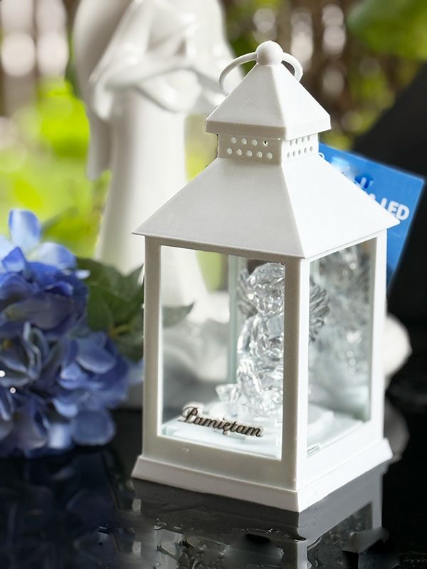 Latarenka z aniołkiem LED Biała 8/18/YZE Złoty Napis "Pamiętam" (baterie w zestawie)