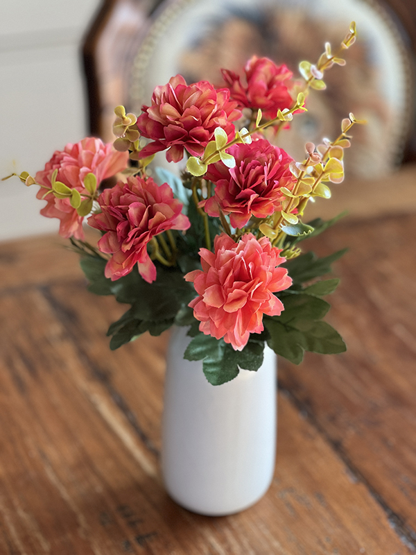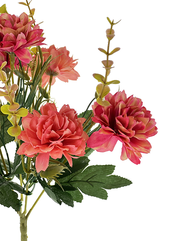 Dalia to wyjątkowy wiosenny kwiat, najbardziej znany z kolorowych ogrodów. Ten uroczy bukiecik sztucznych dalii świetnie urozmaici każdy wiosenny stroik, wianek lub inną kompozycję kwiatową. Całoroczna ozdoba, która swą intensywną barwą wprowadzi miły akcent do dowolnego pomieszczenia lub na zewnątrz.