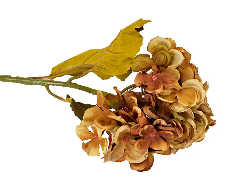 Piękna i dobrej jakości sztuczna gałązka hortensji w jesiennych barwach to prawdziwa ozdoba każdego wnętrza. Idealnie pasuje do wysokiego wazonu.