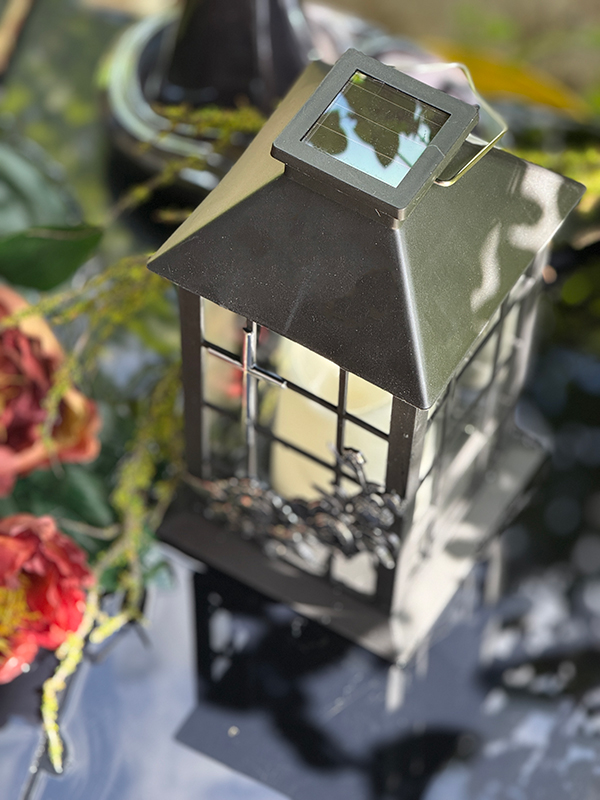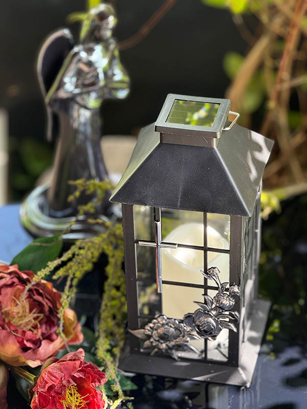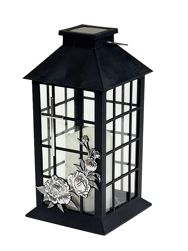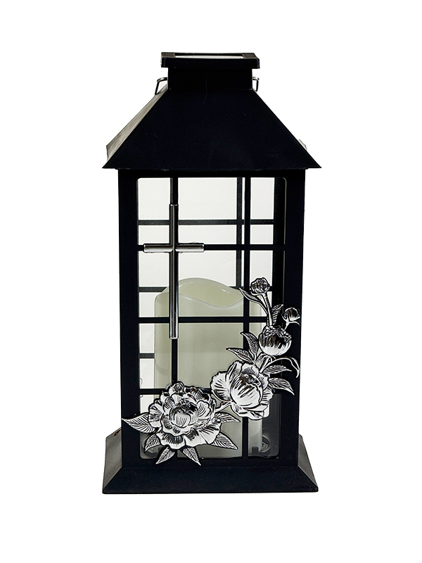 Lampion Solarny Krzyż Ornament Srebrny Migający płomień (Czarny)