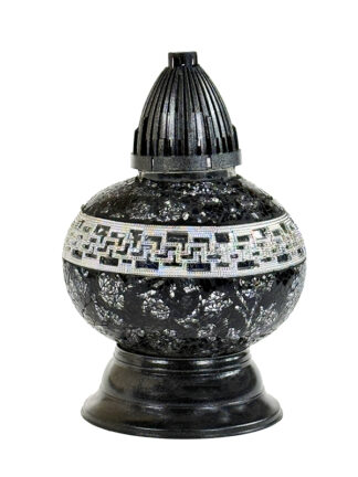 Znicz Artystyczny PREMIUM Big Waza Mozaika Szklana CZARNA+ŚWIECA LED TRIO (35 cm)