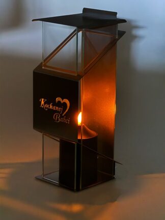 Znicz Artystyczny Witraż KARAFA SERCE Złota Mozaika szklana (36 cm)