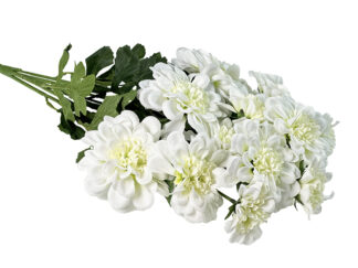 Sztuczne kwiaty mają taką przewagę nad żywymi, że mogą stać na dworze o dowolnej porze roku. Są też wielokrotnie trwalsze. Pozwala to utrzymać piękną kompozycję przez dłuższy czas. Ważne jest, aby wybrać kwiaty dobrej jakości, aby prezentowały się równie piękne, co naturalne kwiaty cięte lub doniczkowe. Dalie sztuczne, które są w naszej ofercie, stanowią właściwie dzieła sztuki. Są wykonane z dbałością o detale. Dzięki temu prezentują się realistycznie i po prostu pięknie. Oprócz tego są odporne na blaknięcie i z pewnością przetrwają więcej niż jeden sezon. Można przebierać w odcieniach, aby dopasować je do estetyki innych ozdób, lub po prostu wybrać ulubiony kolor. Dostępne są kwiaty białe, różowe, żółte, niebieskie i inne, a także bukiety skomponowane we współgrających ze sobą barwach. Można także dobrać odpowiednią wielkość bukietu. Najmniejsze mają 30 cm, a największe 40 cm. Pielęgnacja takich kwiatów jest bardzo łatwa i polega na oczyszczaniu ich wilgotną ściereczką.