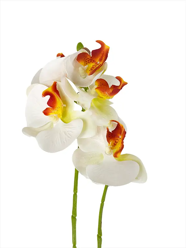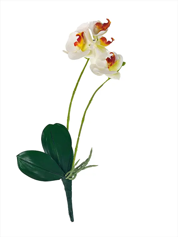 Storczyk dwupędowy w wersji z liśćmi i korzeniem, do własnoręcznego formowania i aranżowania kompozycji. Charakteryzuje się kilkoma główkami kwiatów osadzonych na dwóch łodygach. Produkt wysokiej jakości, gumowany co daje wrażenie prawdziwej rośliny. Kwiat storczyka będzie pięknie prezentował się zarówno w przestrzeni domowej, restauracyjnej lub np. biurowej. Do stworzenia kompozycji można wykorzystać różnego rodzaju doniczki, naczynia szklane, butelki i wiele innych ciekawych rozwiązaniach. Występuje w dwóch wariantach kolorystycznych: biały z różem oraz biały z bordo.