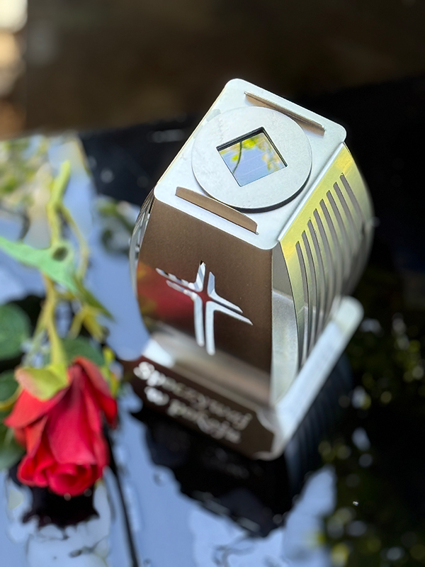 Kapliczka Solarna Metalowa LUXORIA – stal nierdzewna Krzyż ŚP (19 cm)