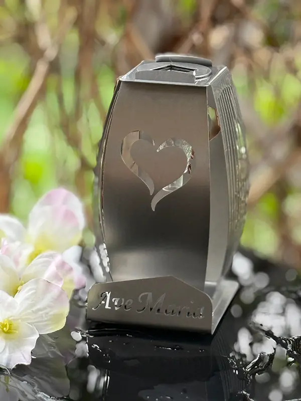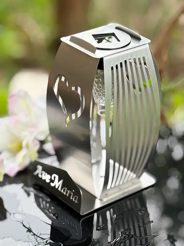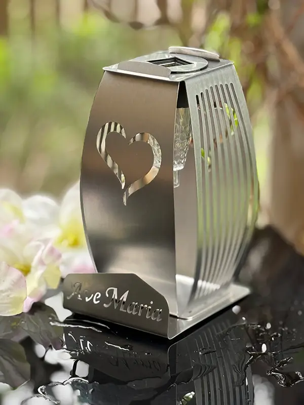 Kapliczka Solarna Metalowa LUXORIA - stal nierdzewna Serce Ave Maria (19 cm)