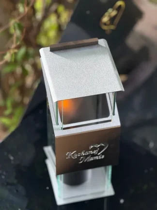 Kapliczka Solarna Metalowa LUXORIA T4 – Stal nierdzewna szkło Mleczne Srebrny „Kochanemu Tacie” (26 cm)