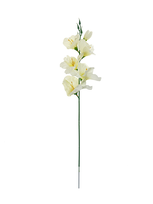 Mieczyk inaczej Gladiolus to wdzięczny kwiat o nierozgałęzionej łodydze , obsypanej kwiatami. Model ten charakteryzuje się pięknym wybarwieniem kwiatów oraz delikatnie cieniowanymi płatkami. Będzie idealną ozdobą wazonu lub dodatkiem do wszelakich kompozycji florystycznych. Elastyczna łodyga pozwoli uzyskać pożądany kształt.