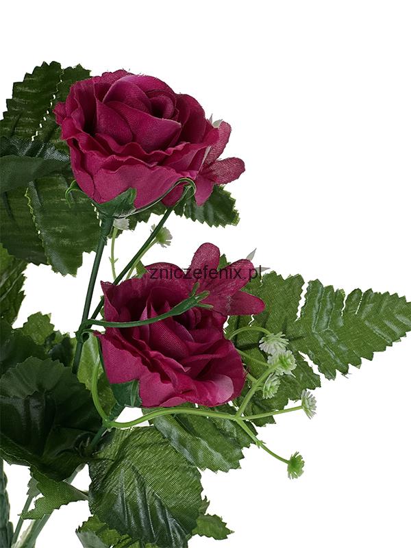 Bukiet róż z paprocią i gipsówką K108 (Ciemny róż) 50 cm