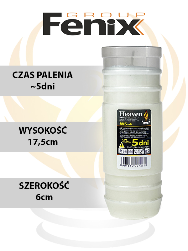 *Czas palenia zależy od warunków pogodowych (np. temperatura, siła wiatru). Wkład do zniczy przeznaczony do użytku zewnętrznego w zniczach. Nie palić w pomieszczeniu!