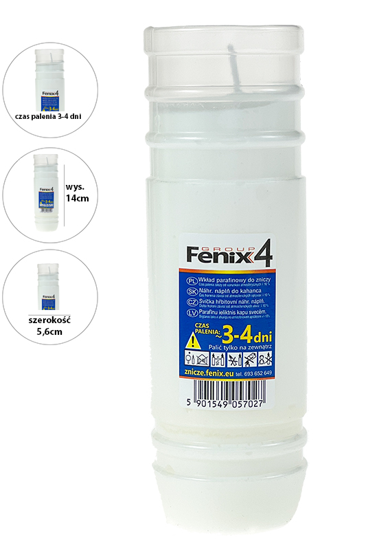 *Czas palenia zależy od warunków pogodowych (np. temperatura, siła wiatru) i wynosi od 1 do 2 dni. Wkład do zniczy przeznaczony do użytku zewnętrznego w zniczach. Nie palić w pomieszczeniu!
