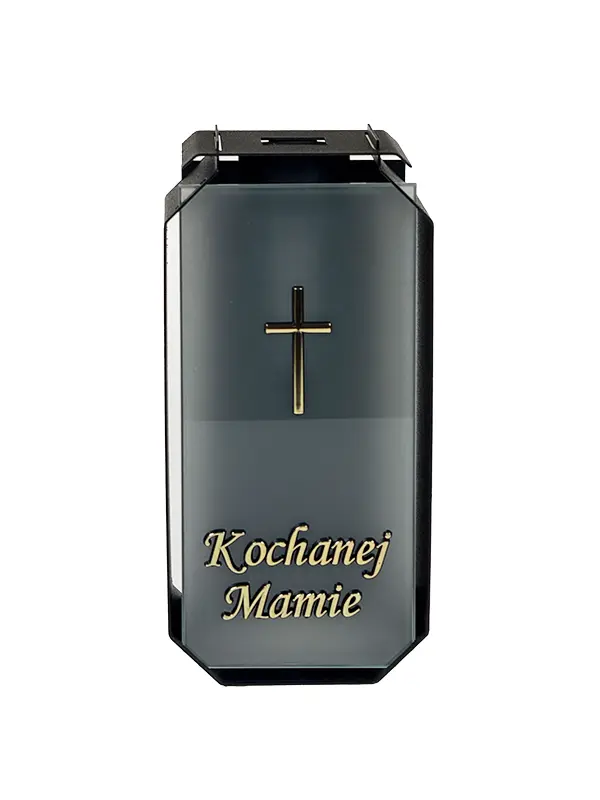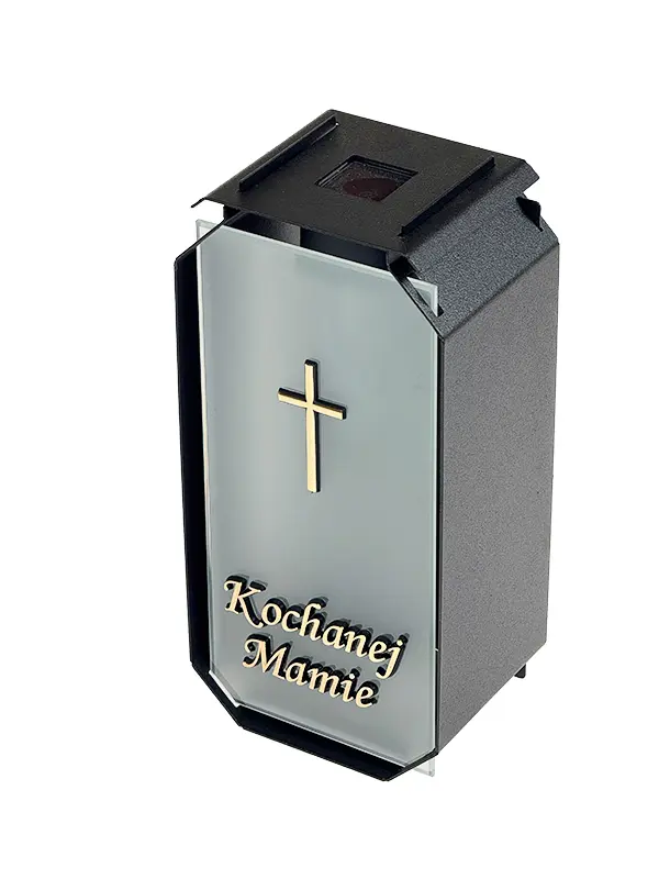 Kapliczka Solarna Metalowa LUXORIA T3 "Kochanej Mamie"- Złoty napis Czarny Mat mleczne szkło (22,5 cm)