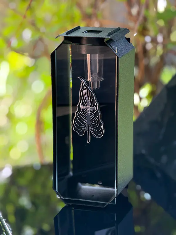 Kapliczka Solarna Metalowa LUXORIA T4 Liść "Kochanej Mamie" Czarny Mat Transparent (26 cm)