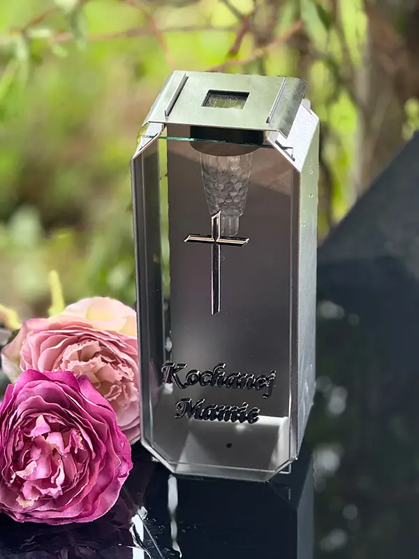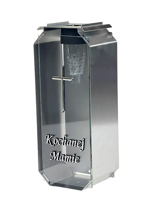 Odporność na warunki atmosferyczne: Cała konstrukcja wykonana ze stali nierdzewnej, kwasoodpornej (szczotkowanej). Dzięki tej technologii , produkt jest niezwykle odporny na zarysowania, korozję oraz zmienne warunki pogodowe, co zapewnia jego estetyczny wygląd przez wiele lat. Nie pozostawi żadnych śladów na pomniku.