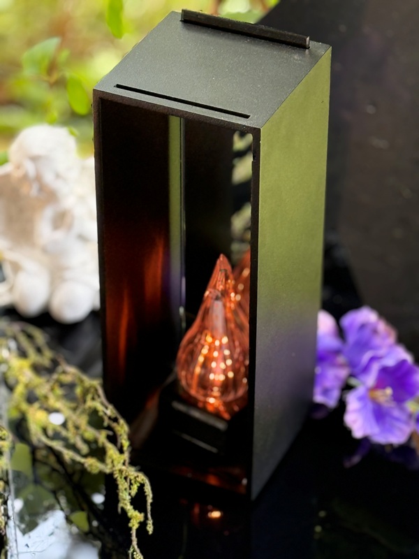 Elegancki znicz metalowy Kolumna Premium, Kapliczka, Bardzo wytrzymała + LED żywy płomień (31cm) UNIKAT
