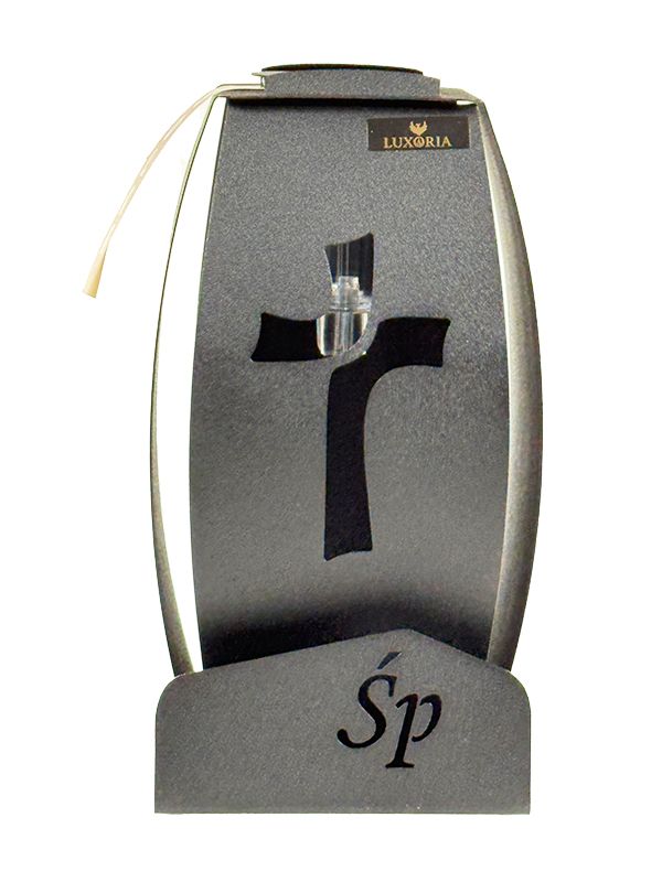 Solidna obudowa wykonana ze stali nierdzewnej malowana proszkowo jest odporna na korozję i warunki atmosferyczne, co gwarantuje wyjątkową trwałość. Wysokość kapliczki wynosi 22 cm, co sprawia, że produkt prezentuje się elegancko zarówno na cmentarzach, jak i w miejscach pamięci.