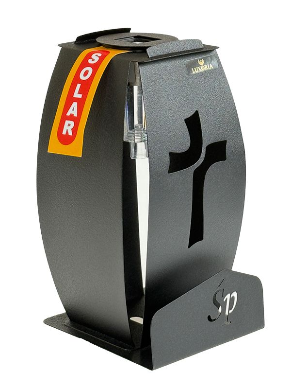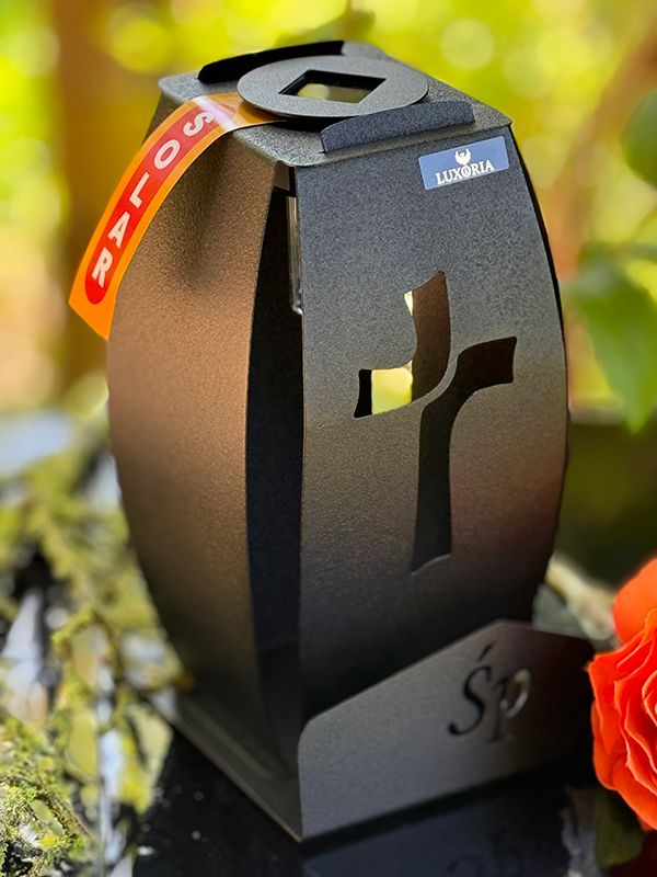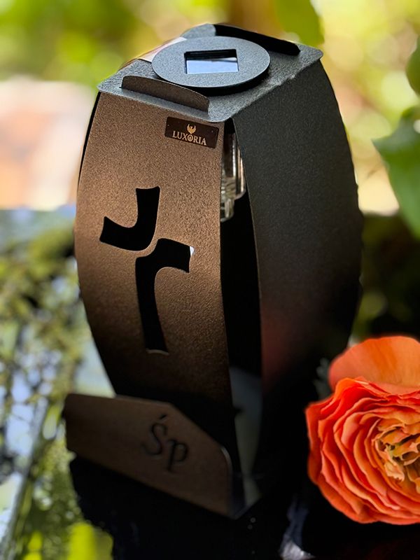 Kapliczka Solarna Metalowa LUXORIA 2 - Czarna Krzyż Śp. (22 cm)