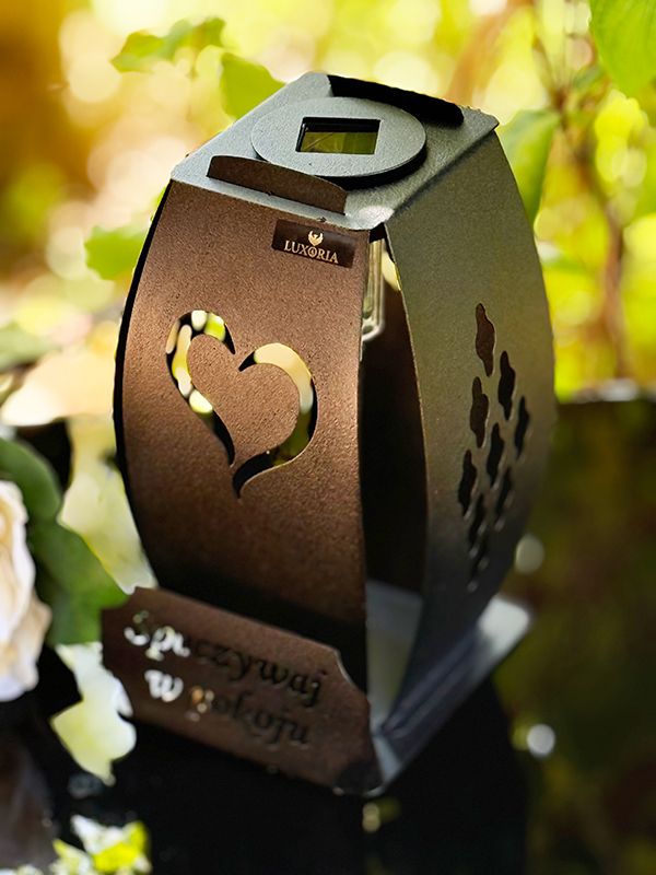 Kapliczka Solarna Metalowa LUXORIA 2 - Czarna Serce Spoczywaj w Pokoju (22 cm)