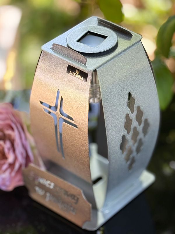 Znicz solarny z prestiżowej serii LUXORIA 2 to połączenie nowoczesnej technologii z klasycznym wyglądem. Dzięki wbudowanemu panelowi solarnemu z soplem rozpraszającym światło, znicz automatycznie ładuje się w ciągu dnia i świeci od zmierzchu do świtu, zapewniając nieprzerwane światło pamięci nawet do 1000 dni!