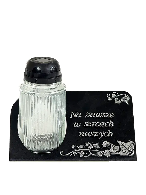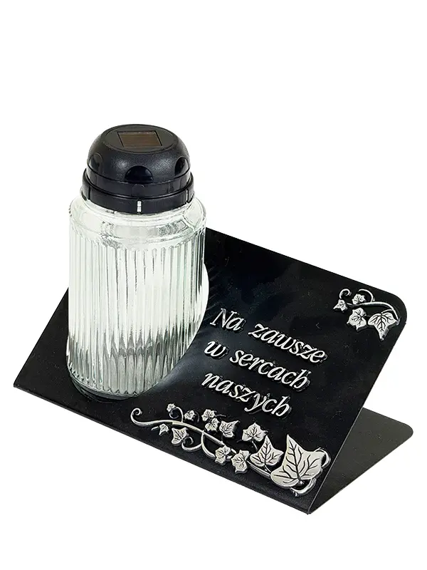 Znicz solarny Agostino Czarny Srebrny napis "Na zawsze w sercach naszych" (19 cm)