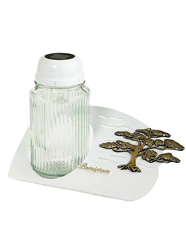 Znicz solarny Corrado "Pamiętam" Biały, złote Drzewo (19 cm)