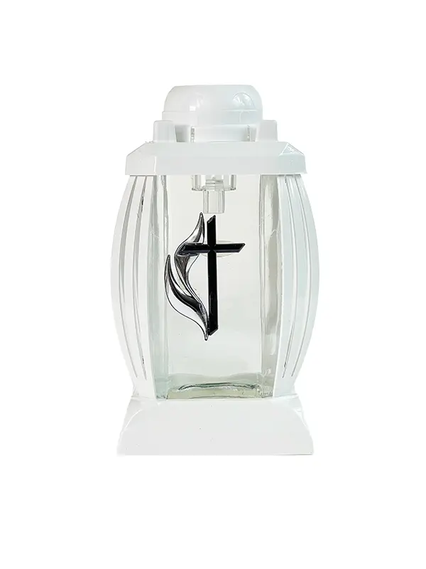 Znicz Solarny Kapliczka Prima1 Biały Krzyż + Płomień (24cm)