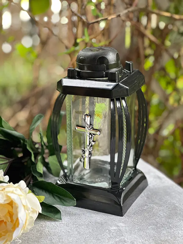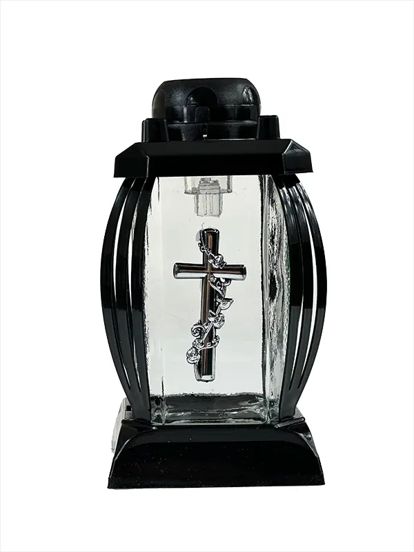 Znicz Solarny Kapliczka Prima1 Czarny Krzyż Srebrny (24cm)