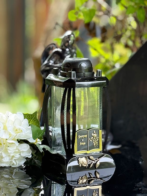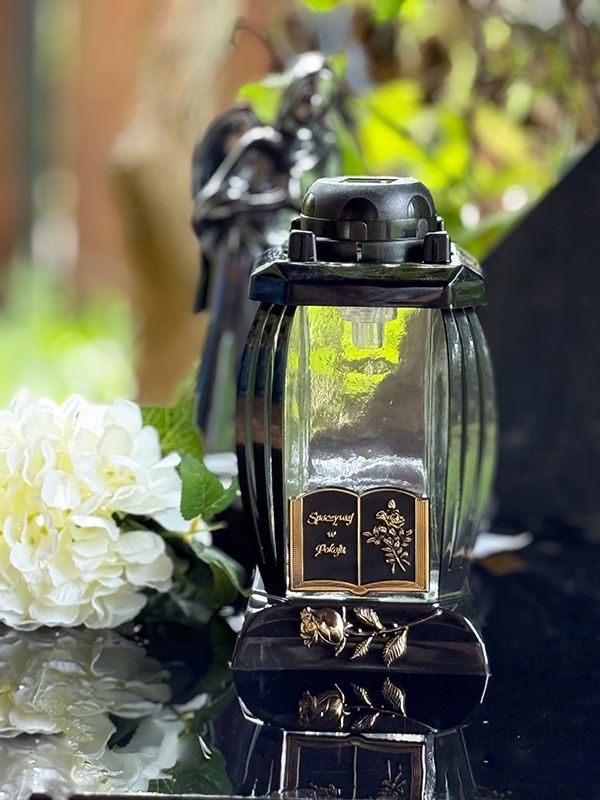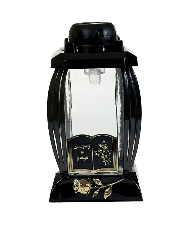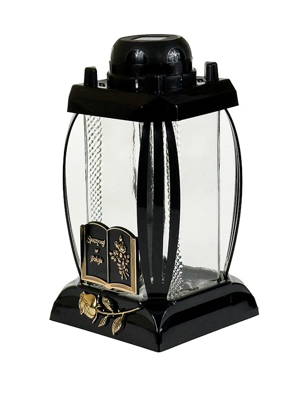Znicz Solarny Kapliczka Prima1 Czarny Złota Książka "Spoczywaj w pokoju" (Złoty) (24cm)