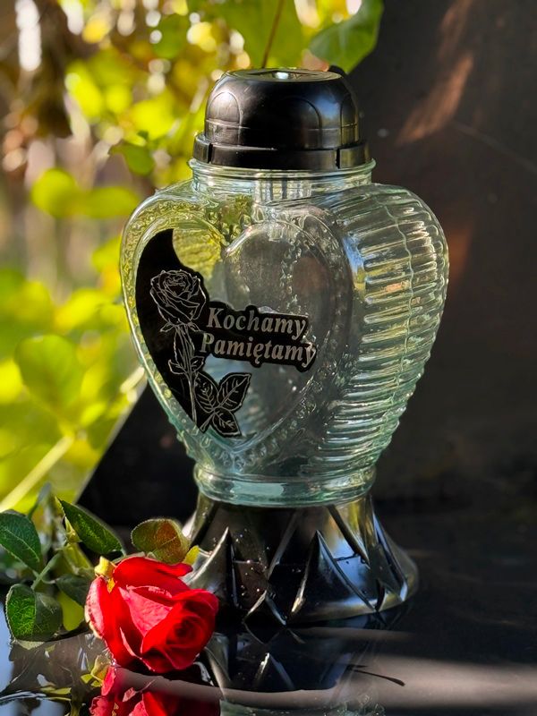 Znicz solarny S882 Róża "Kochamy Pamiętamy" Ciepłe światło Czarny (28,5 cm)
