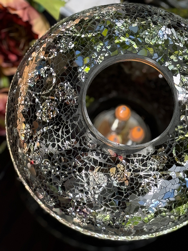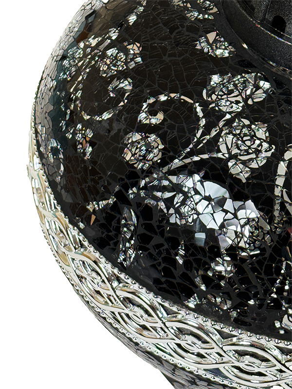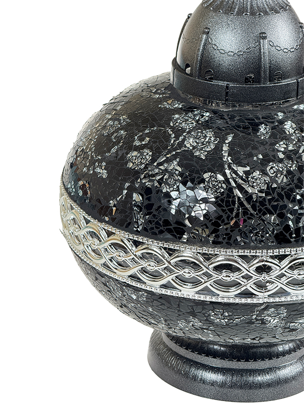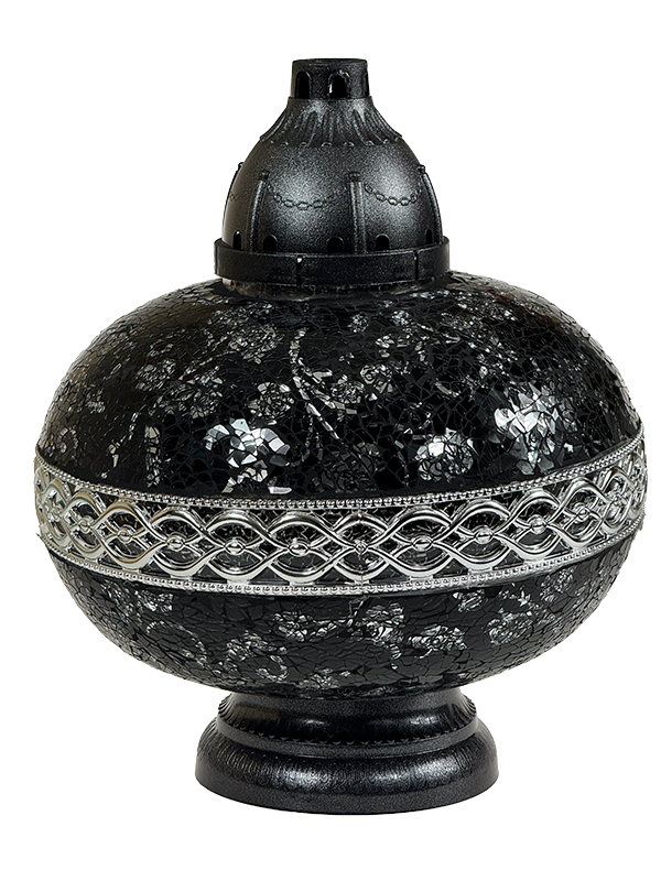 Znicz Artystyczny PREMIUM Big Waza Mozaika Szklana CZARNA+ŚWIECA LED TRIO (35 cm)
