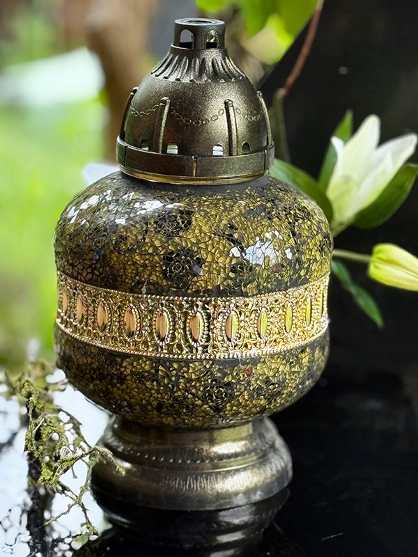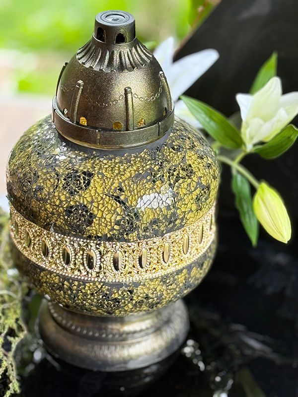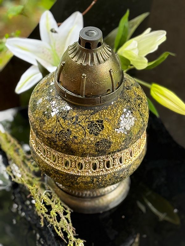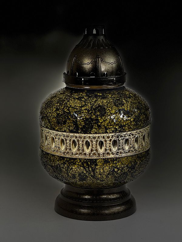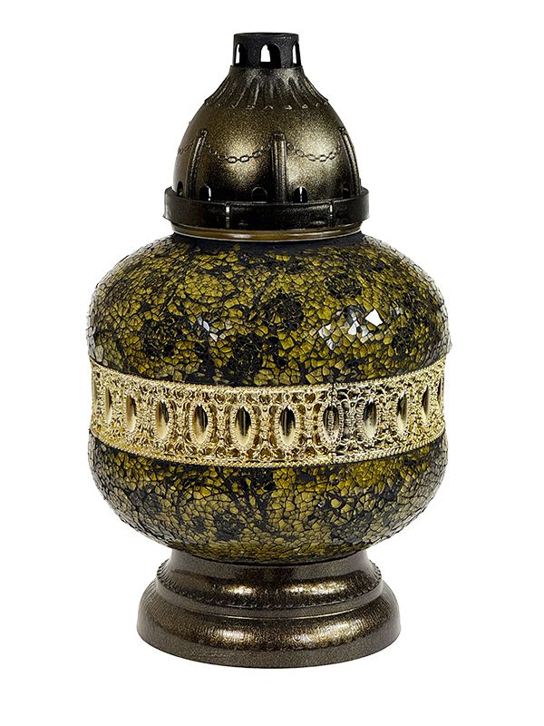 Znicz Artystyczny Witraż Urna Złoto-Czarne Róże Nowość (34 cm)