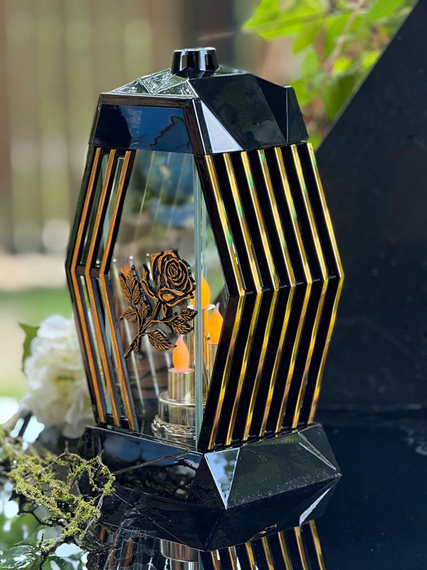 Znicz Kapliczka Lamel Złoty 3D Metaliczny (37,5 cm)