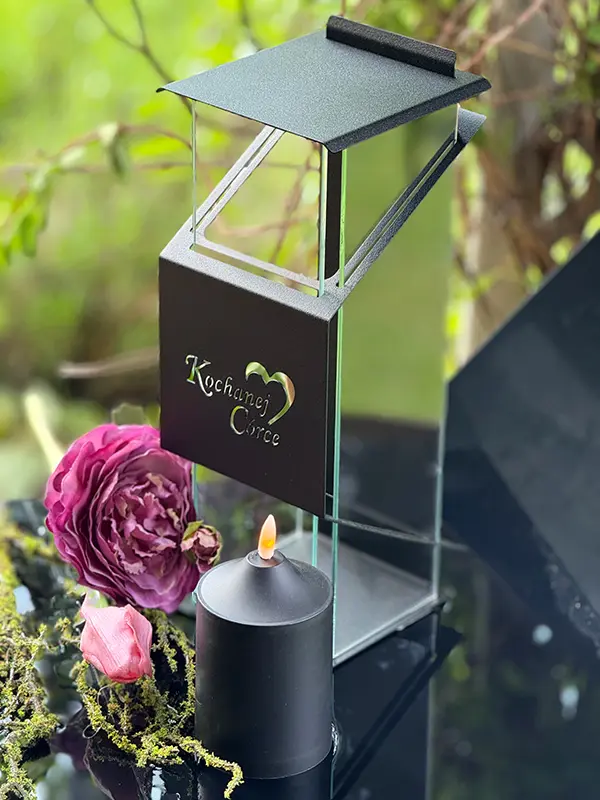 Znicz Kapliczka Metalowa Czarna Premium LUXORIA KD ze ŚWIECĄ "Kochanej Córce"