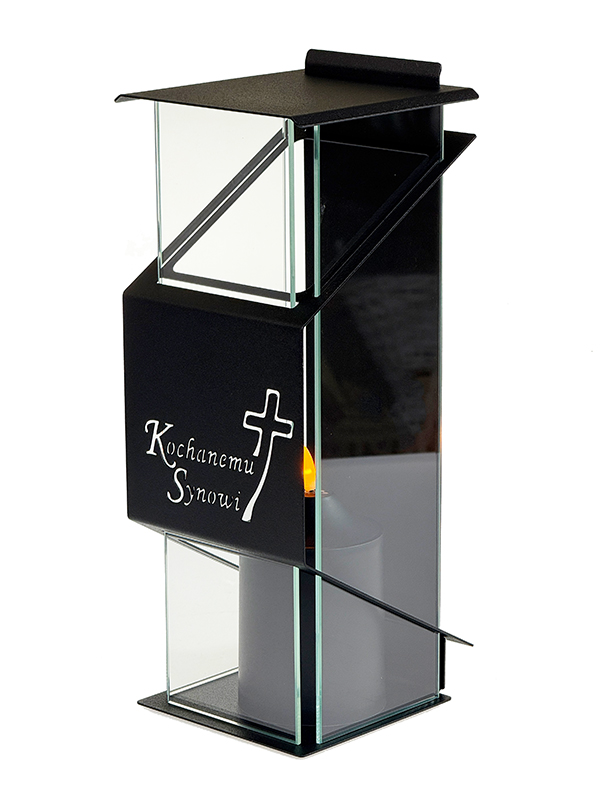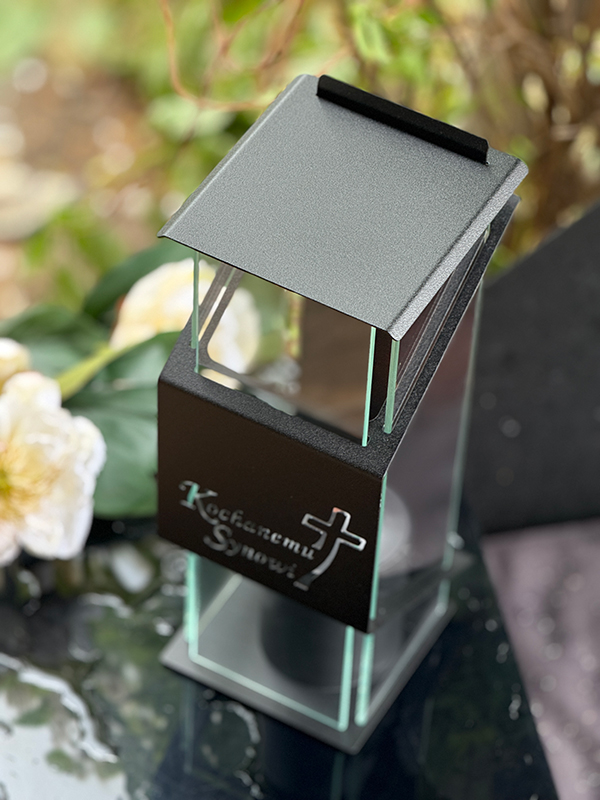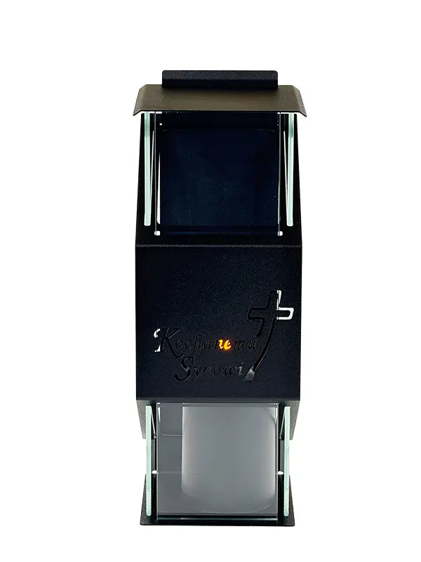 Znicz Kapliczka Metalowa Czarna Premium LUXORIA KD ze ŚWIECĄ "Kochanemu Synowi"