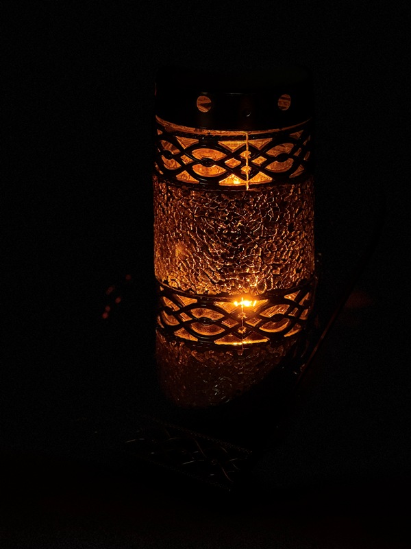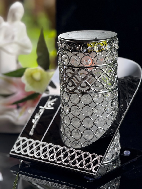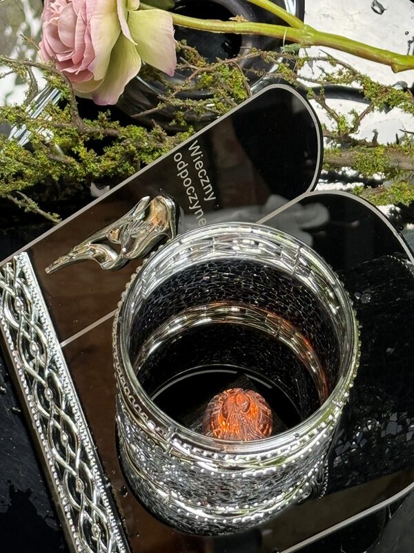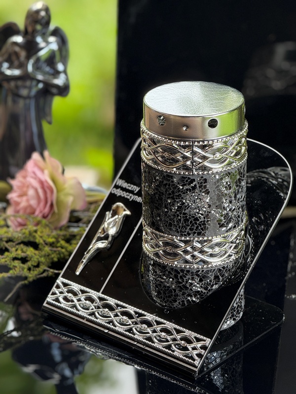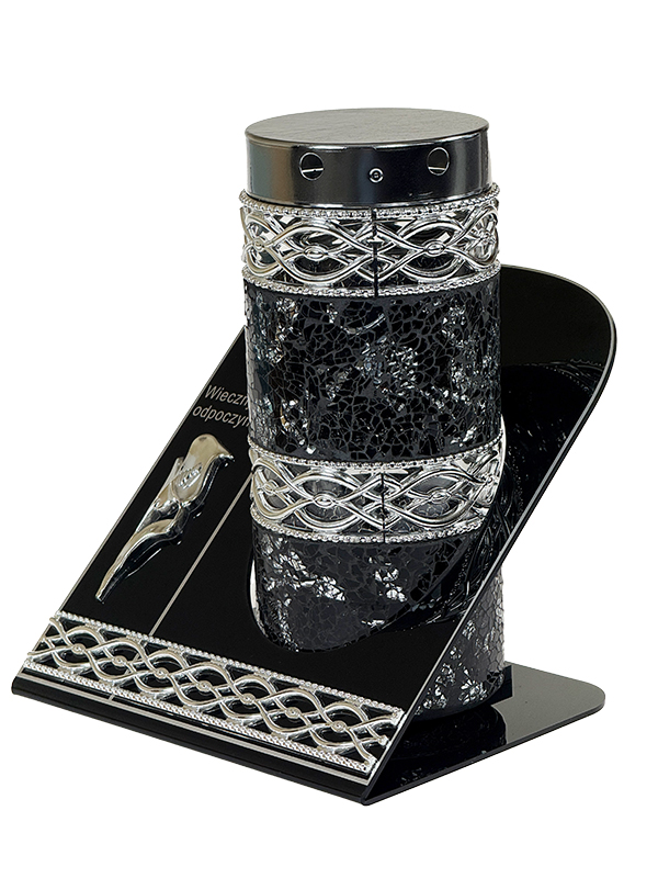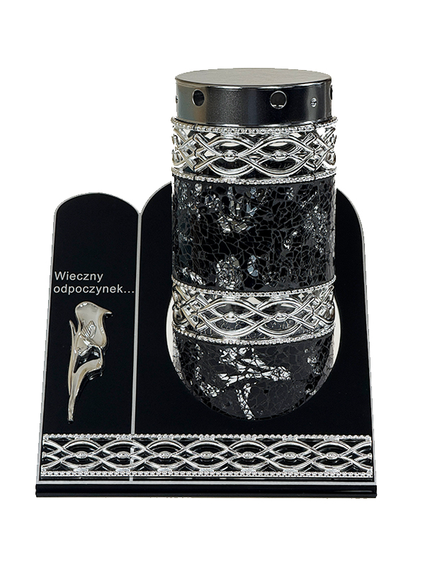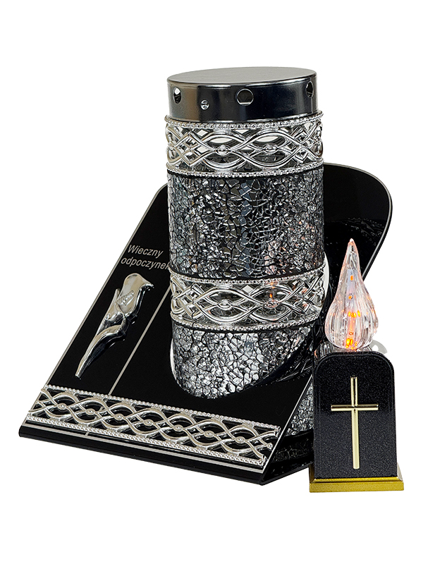 Znicz Lampion Witraż Dekor Akryl +ŚWIECA LED Memorial Czarna Mozaika Szklana