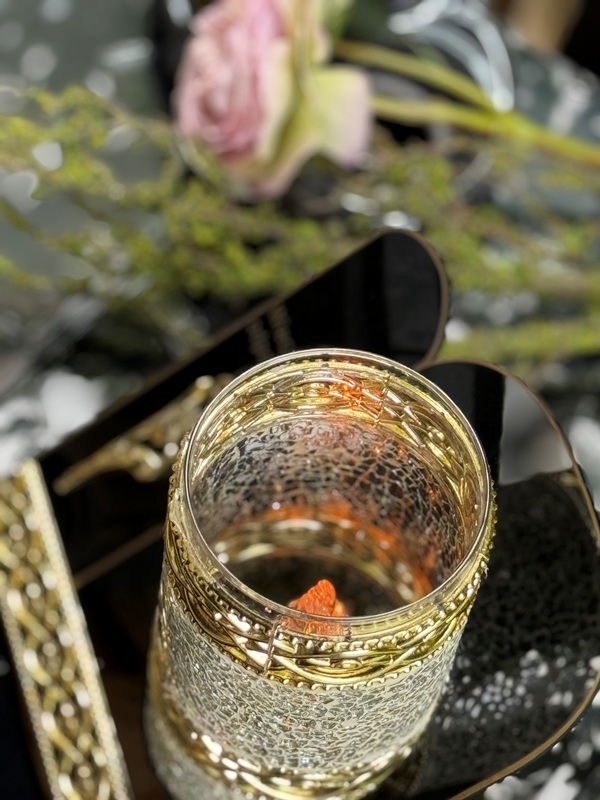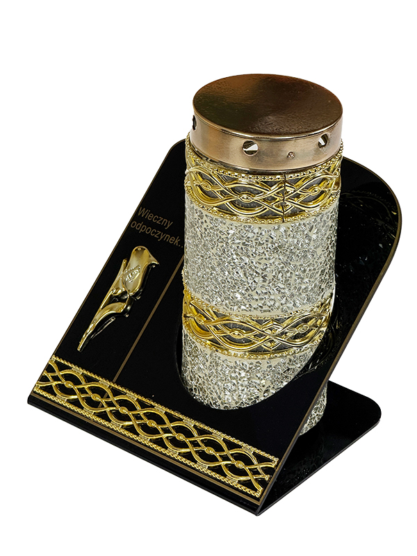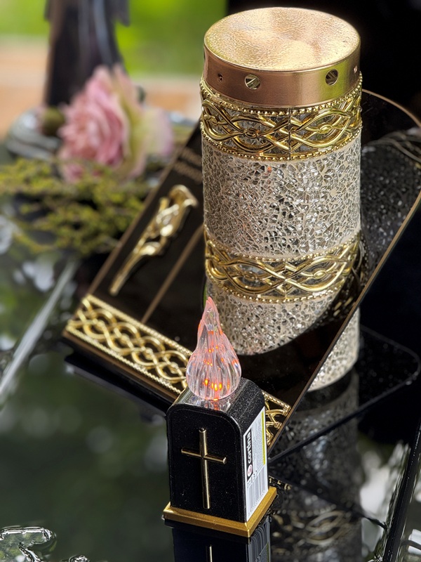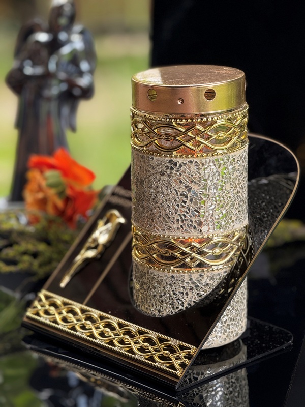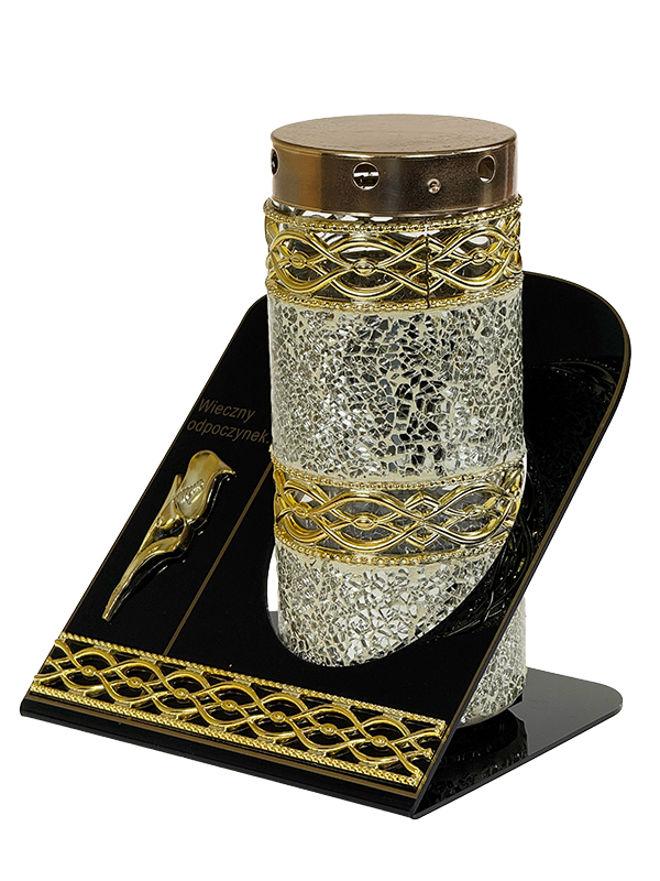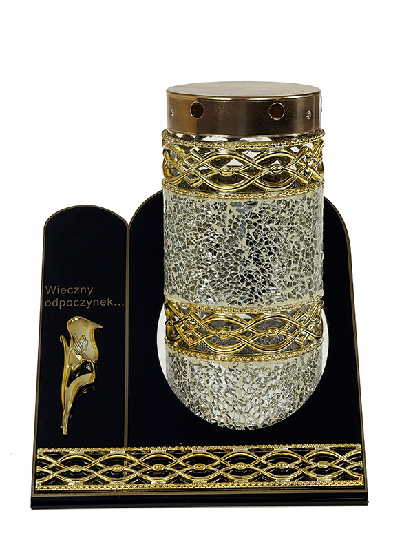 Znicz Lampion Witraż Dekor Akryl +ŚWIECA LED Memorial Złota Mozaika Szklana