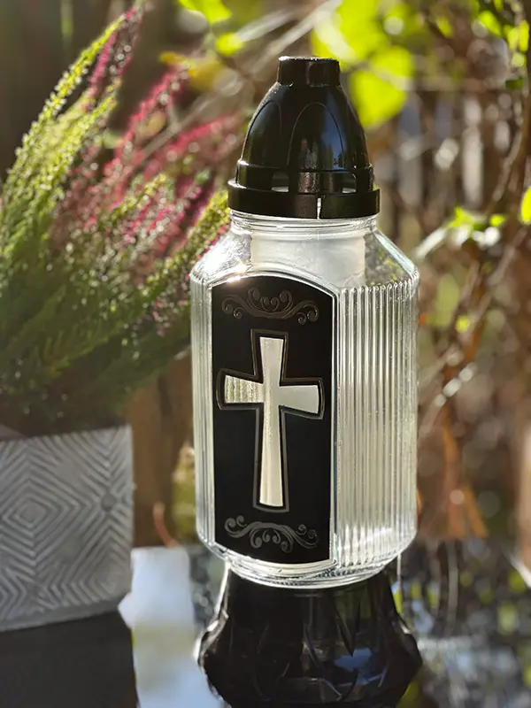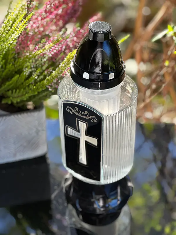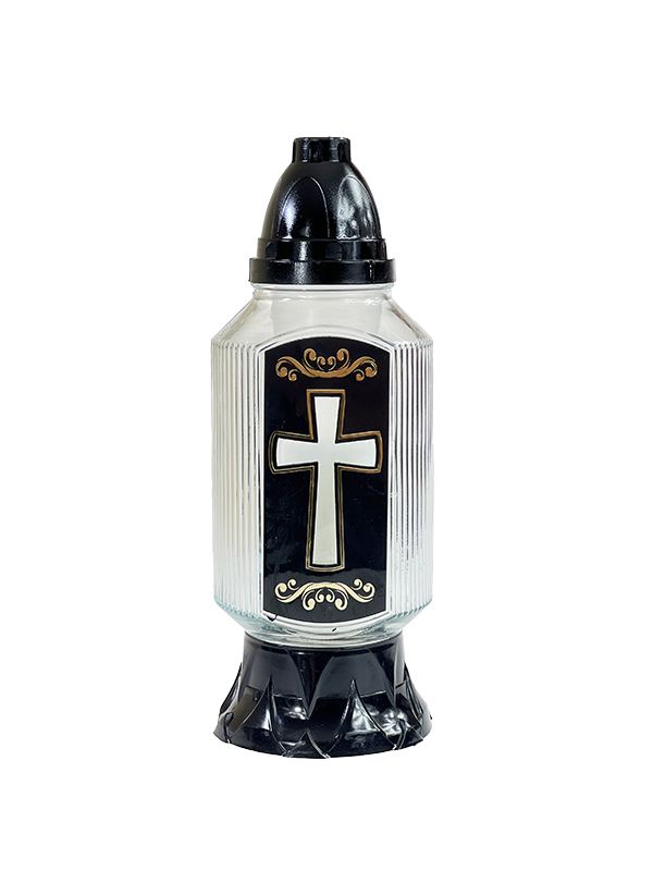Znicz szklany Baszta AT Czarna Krzyż (29cm)