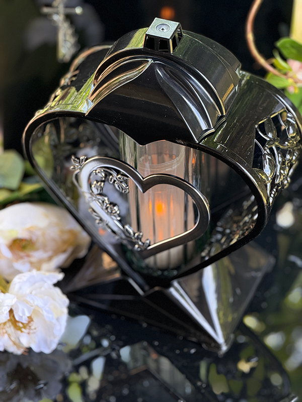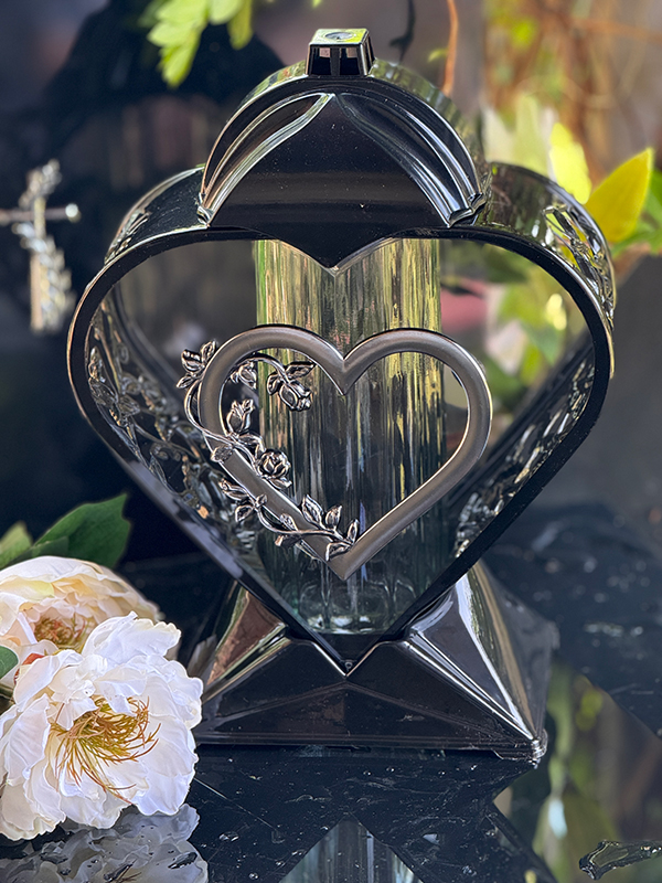 Znicze Artystyczne, Znicze okolicznościowe, Znicze szklane, Znicze szklane na wkład, Znicze w kształcie serca, Znicze z różą
