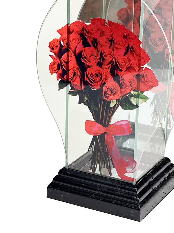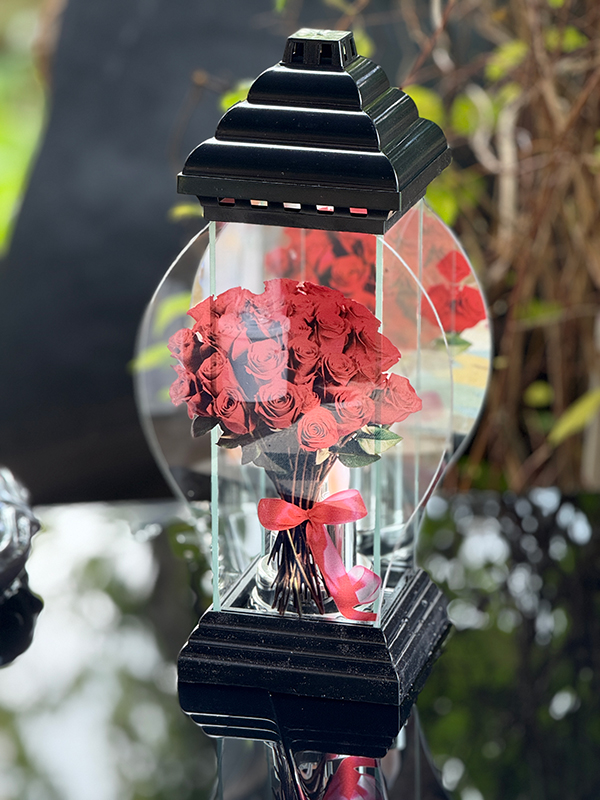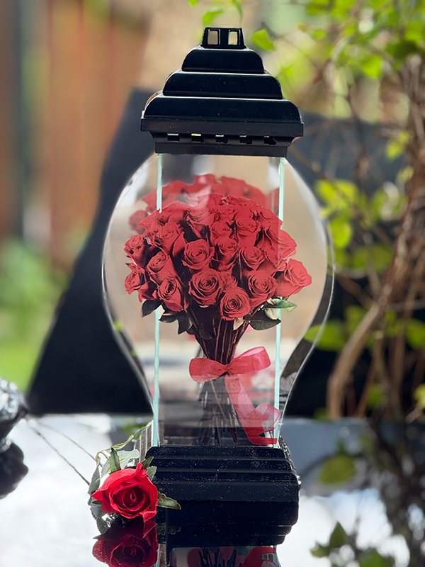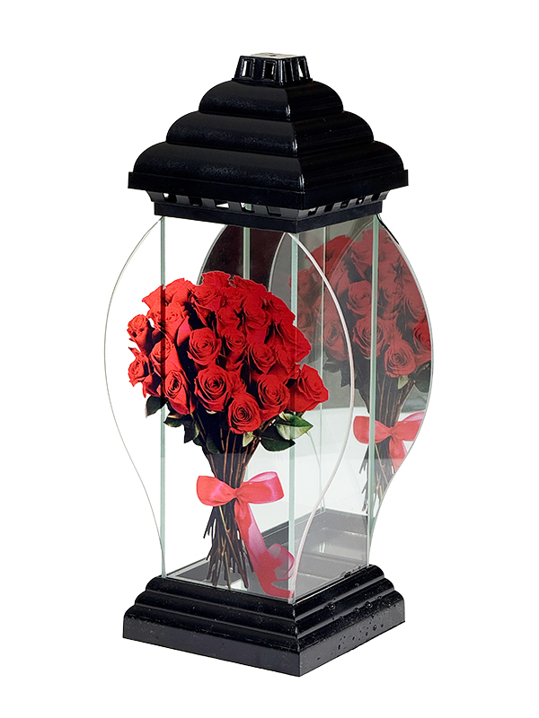 Znicz szklany Napoleon Bukiet Czerwonych Róż (40 cm)