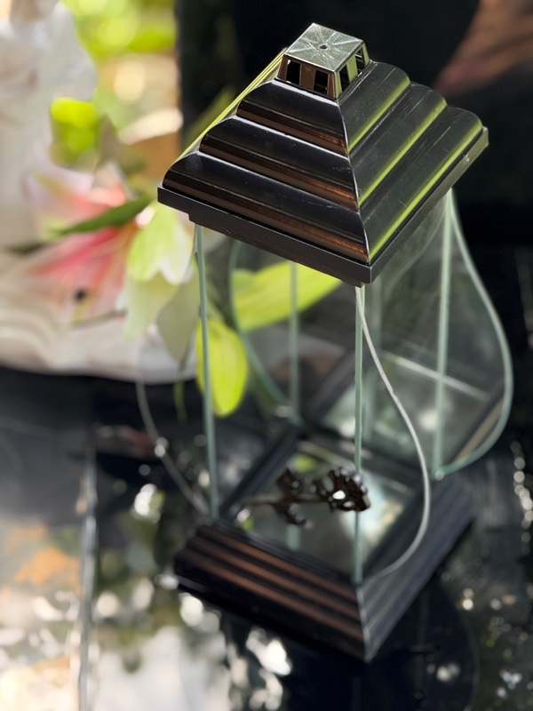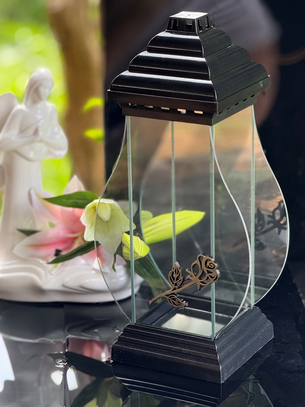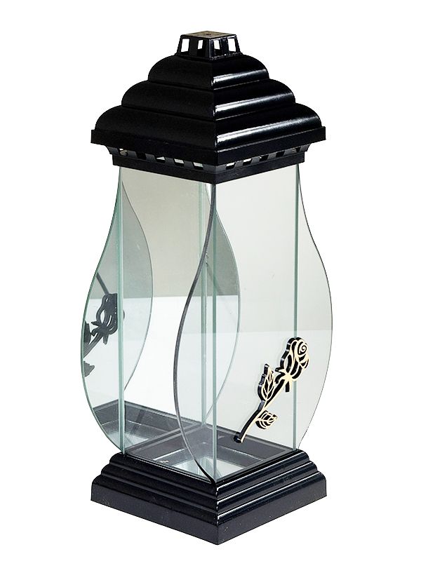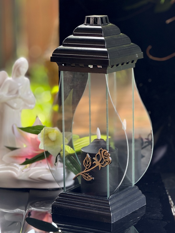 Znicz szklany Napoleon Złota RÓŻA +Świeca Led (40 cm)