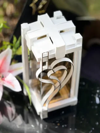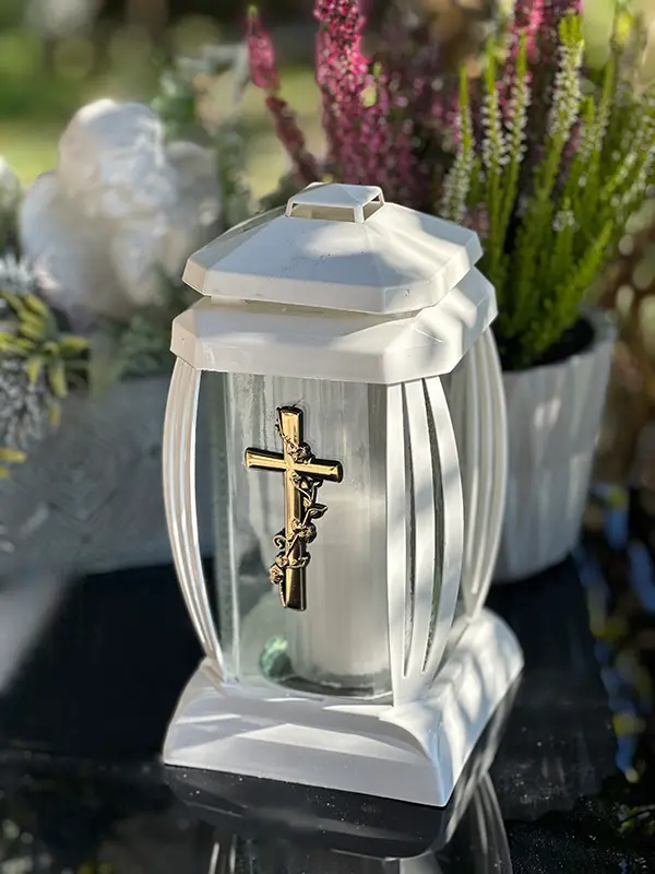 Znicz szklany Prima1 BIAŁY KRZYŻ Złoty (24cm)