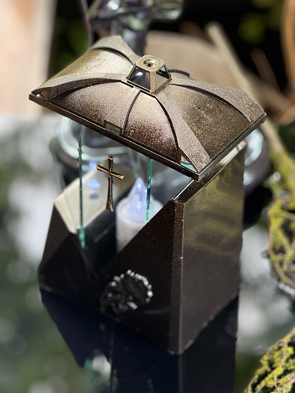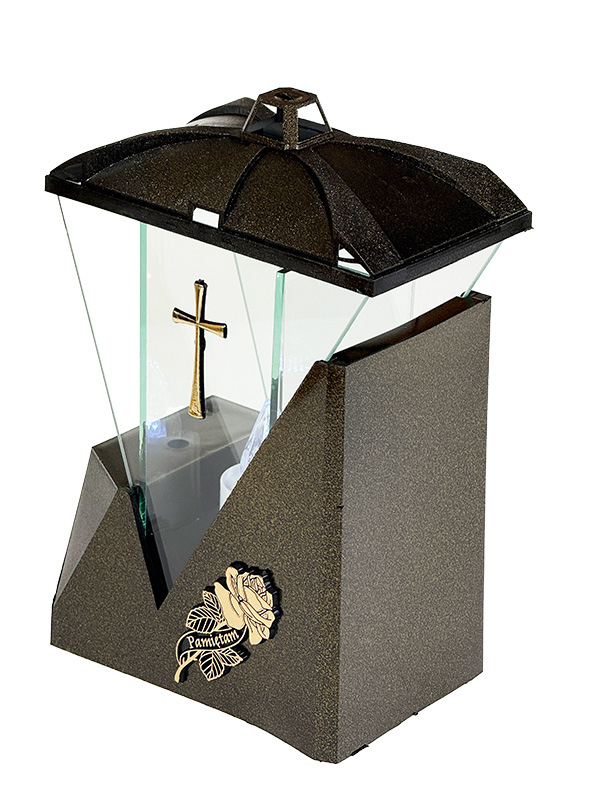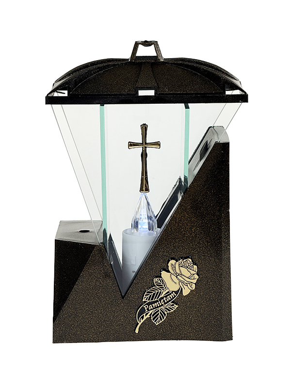 Znicz szklany TRÓJKĄT Brązowy+ Wkład elektryczny