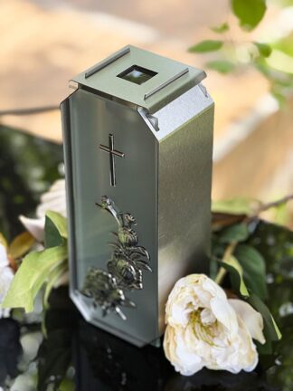 Znicz metalowy, kapliczka Premium Krzyż ZBK3G Biały/Grafit