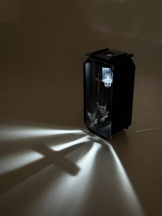 Kapliczka Solarna Metalowa LUXORIA T3 ZŁOTE Gołębie Czarny Mat Transparent (22 cm)